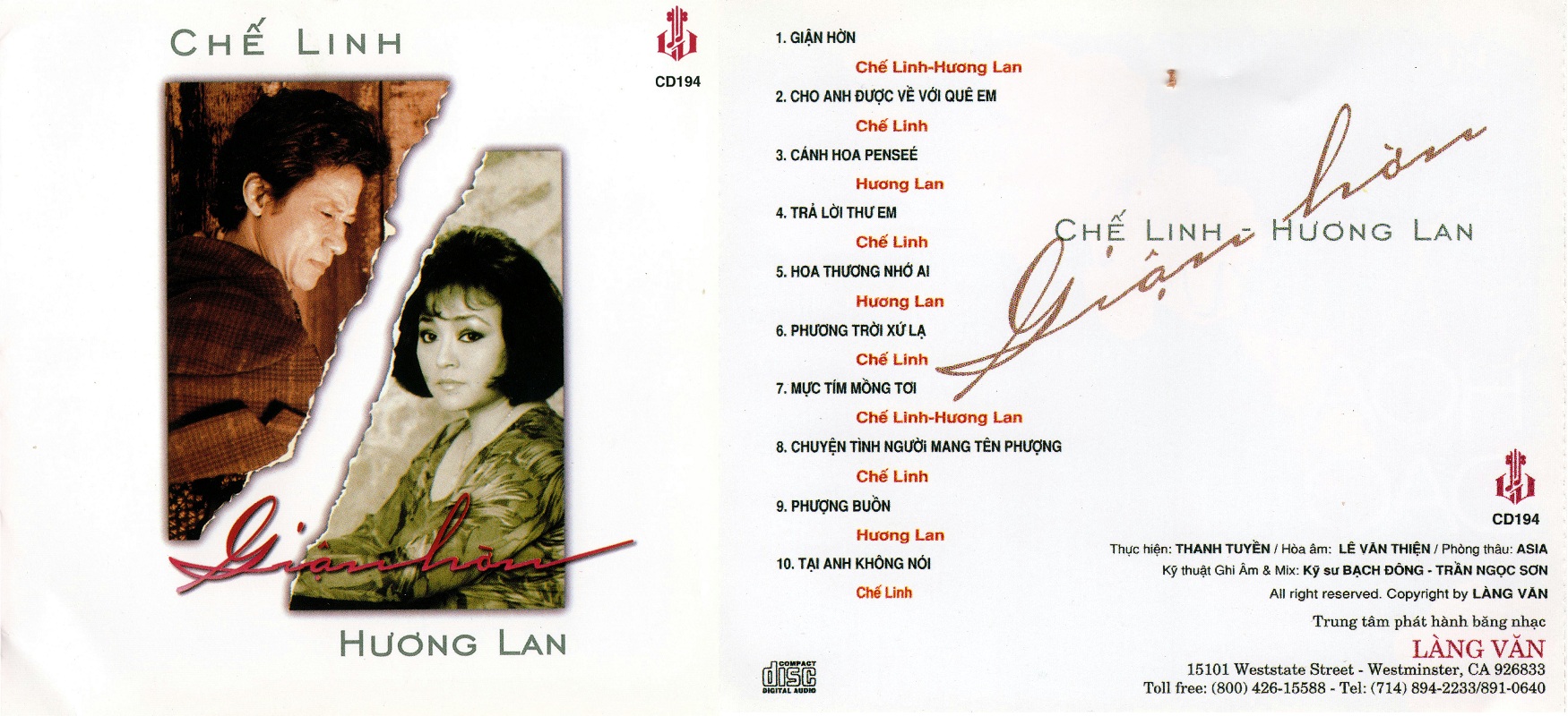 Bộ Chế Linh Hương Lan Song Ca gồm 10 cd