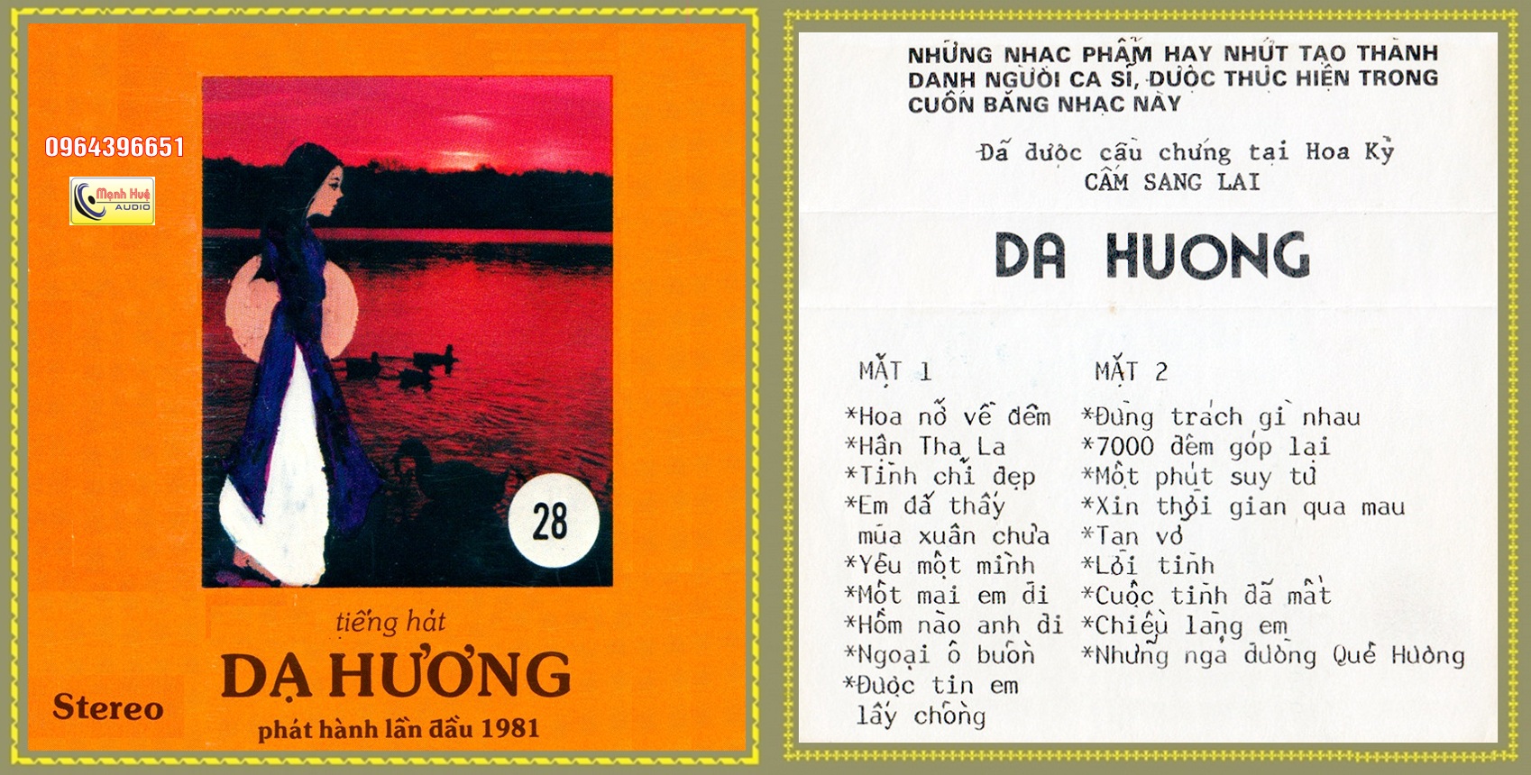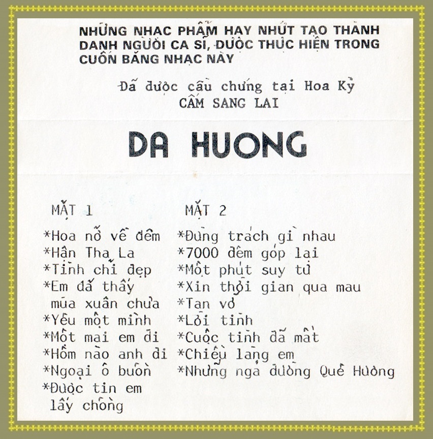 Dạ Hương thâu âm trước 1975. Băng Cối 7 in 4 Track.