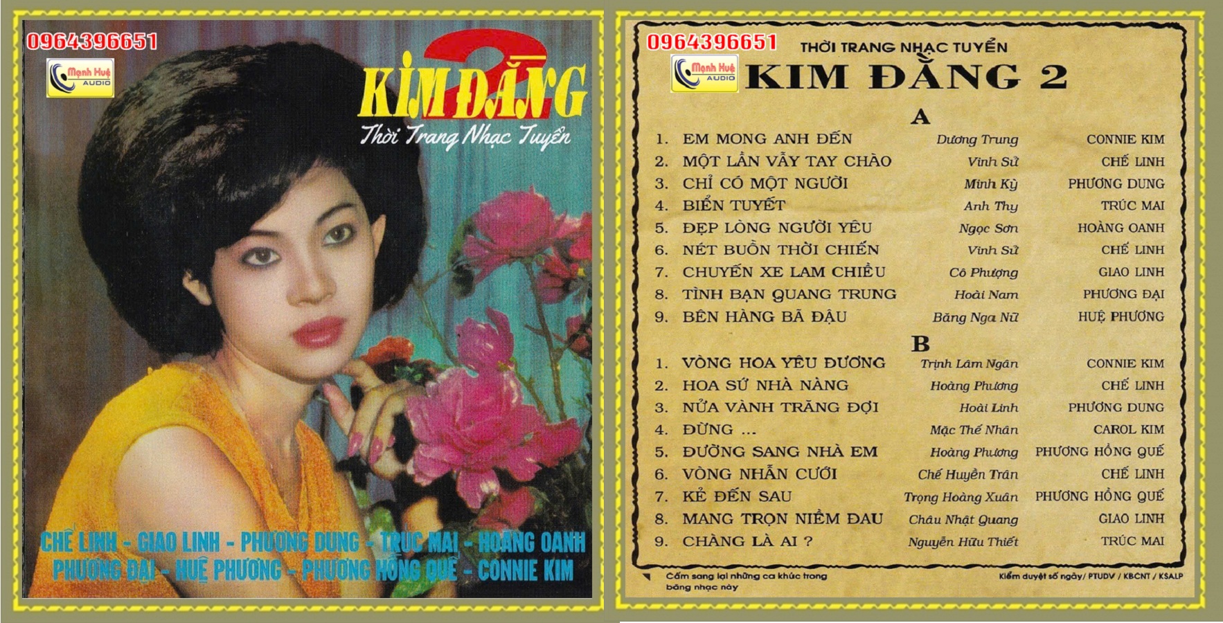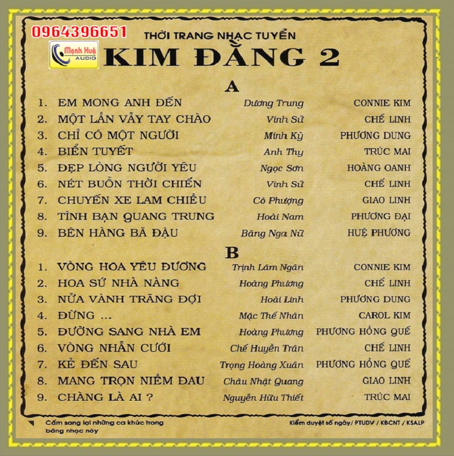 Kim đằng 2 . thâu âm trước 1975. Băng Cối 7 in 4 Track.