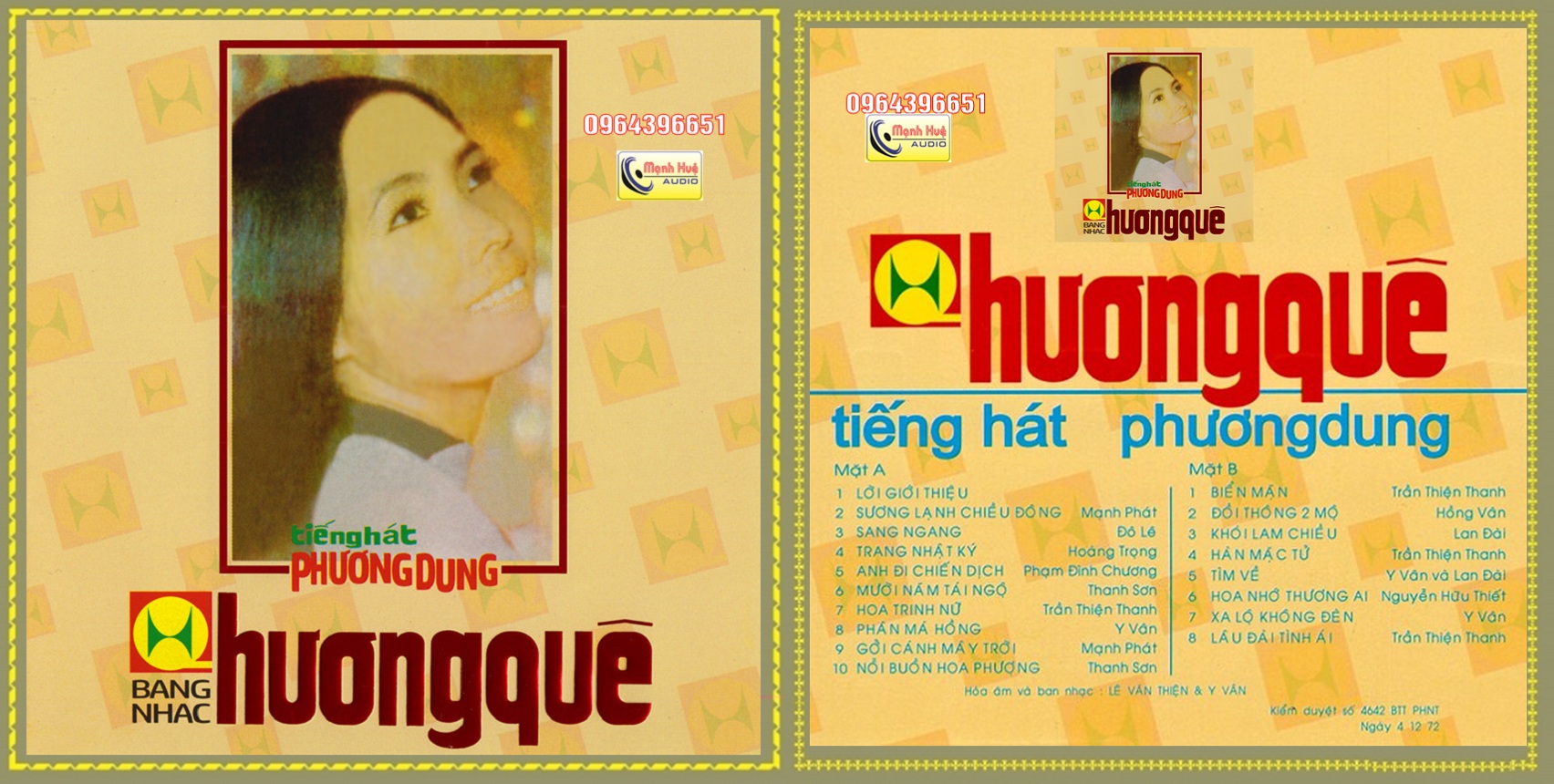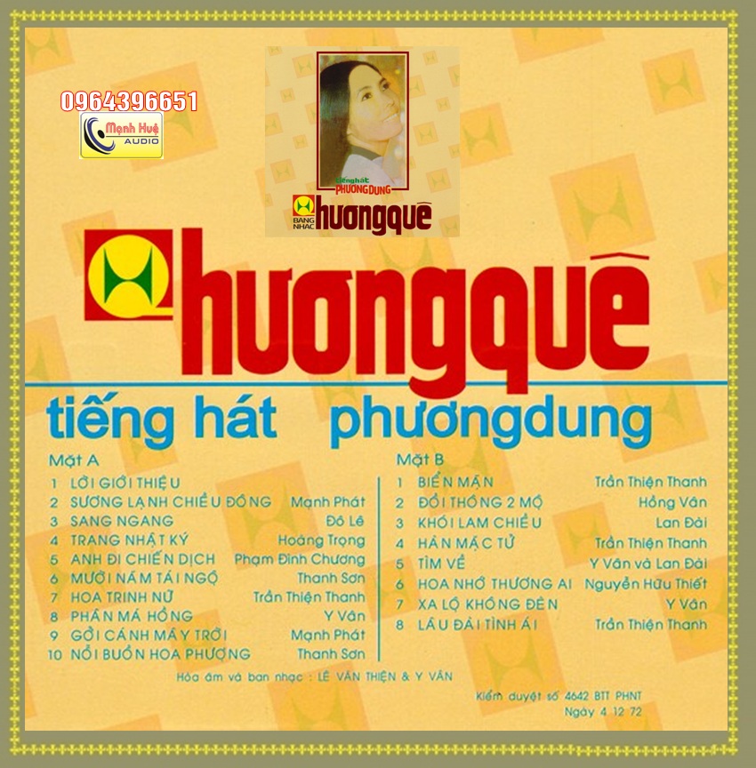 Phương Dung 1 Hương Quê thâu âm trước 1975. Băng Cối 7 in 4 Track.